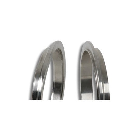 Stainless steel V-band kit with male/female positioning groove for perfect alignment of the two flanges (example = photo 2) or also called flanges. These flanges are machined from quality stainless steel on numerically controlled machines and are welded directly onto the two parts of the line to be connected. Then the collar holds the two parts of the line in position. It also ensures, thanks to its V system, a perfect seal between the two parts.