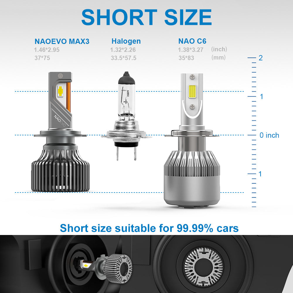 LED KIT 6500K MAX3 Series NAOEVO LED headlight bulb 60 W 12500 lm | NAOEVO