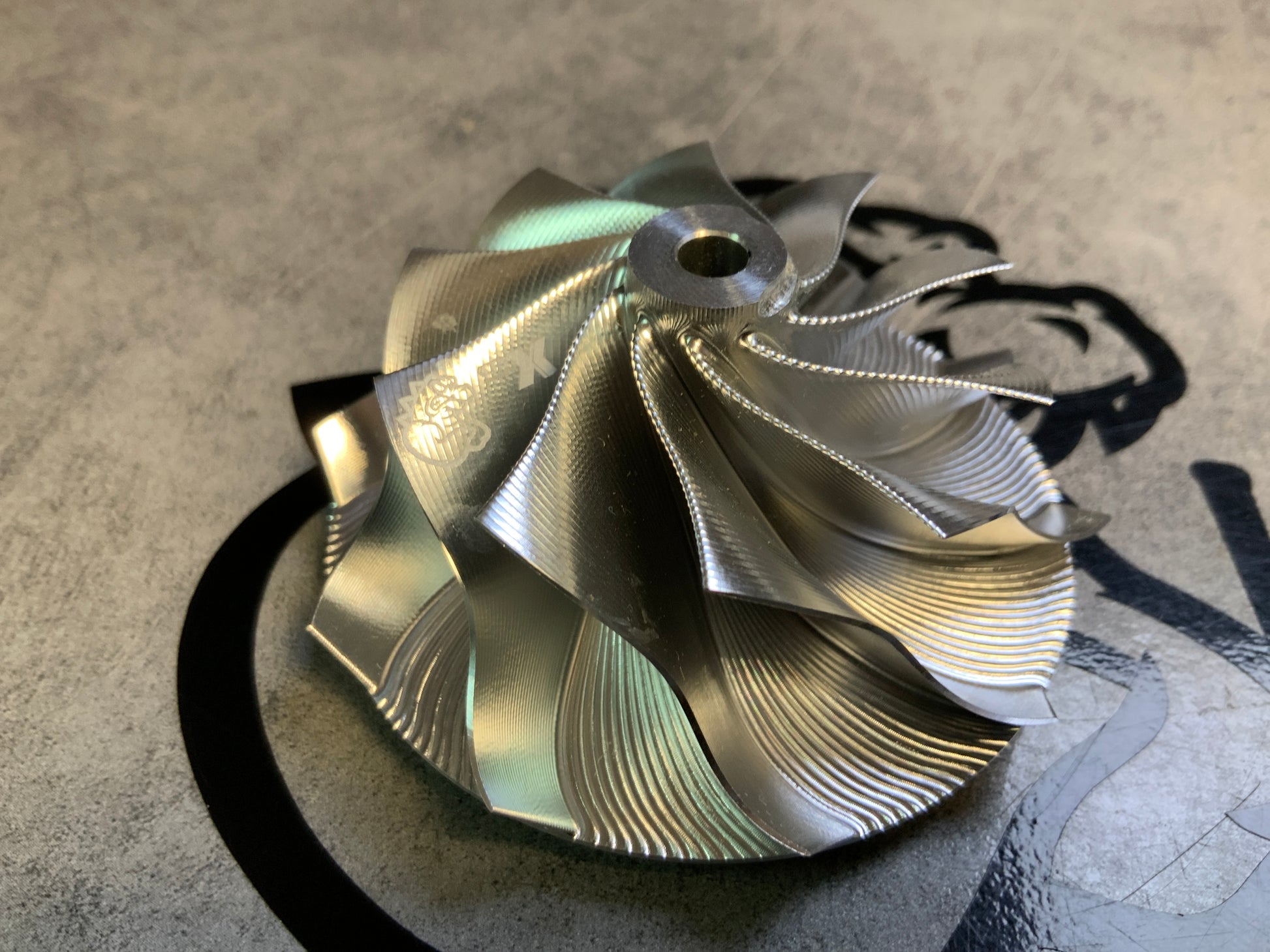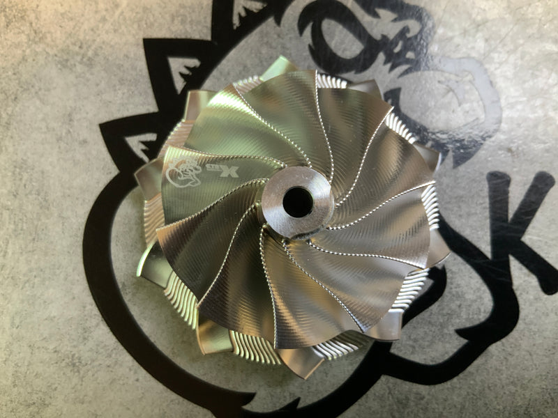 Performance compressor wheel machined from solid with dynamic balancing.