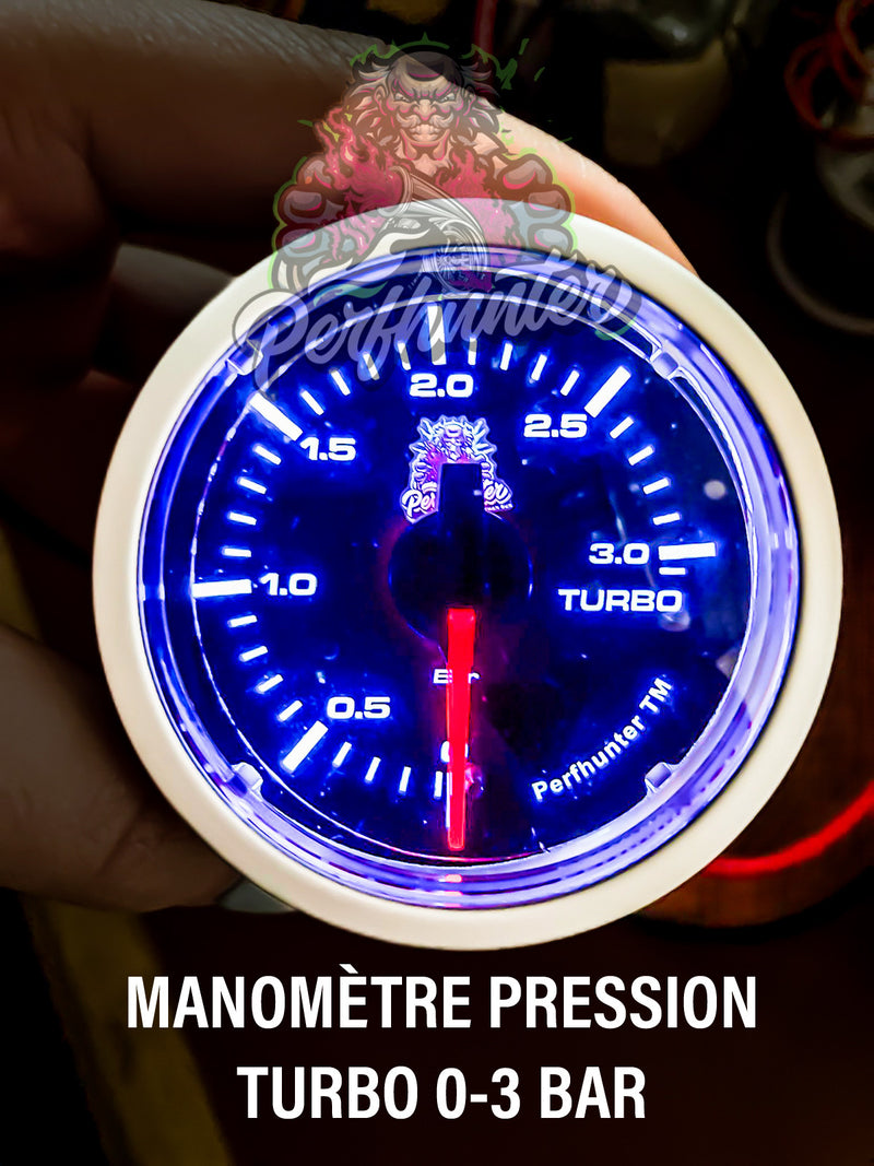 Manomètre Pression Turbo 0 - 3 BAR Capteur Pneumatique Affichage Aiguille 52mm PERFHUNTER